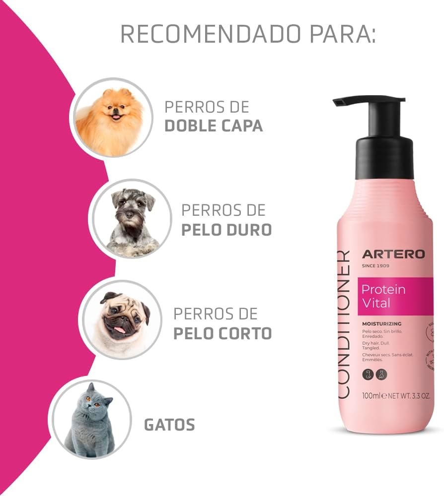 A boa higiene dos nossos animais de estimação desempenha um papel fundamental na sua saúde, ajudando a prevenir as diversas doenças e infeções a que os nossos amigos peludos estão expostos todos os dias. É por isso que na Artero desenvolvemos este condicionador concentrado para cães e gatos.